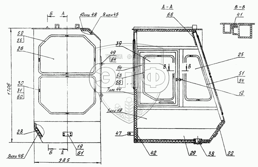 Каталог запасных частей к технике: АОМЗ ЛТ-72 Б. Кабина