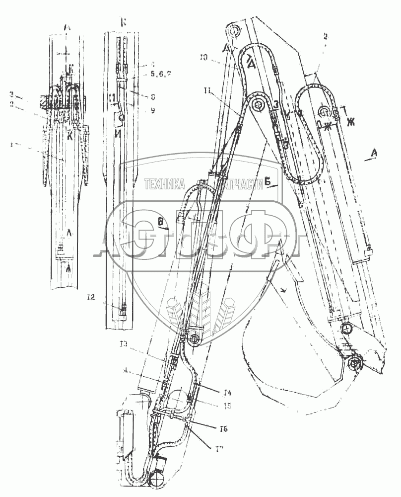 Каталог запасных частей к технике: Атек-2324-1. Гидроразводка обратной лопаты