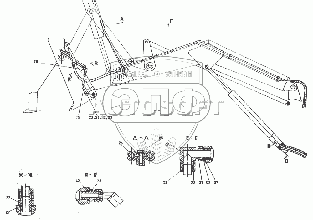 Каталог запасных частей к технике: Атек-2324-1. Гидроразводка погрузочного устройства