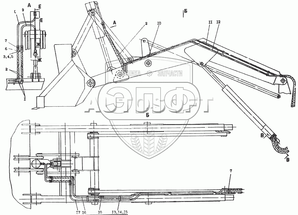Каталог запасных частей к технике: Атек-2324-1. Гидроразводка погрузочного устройства
