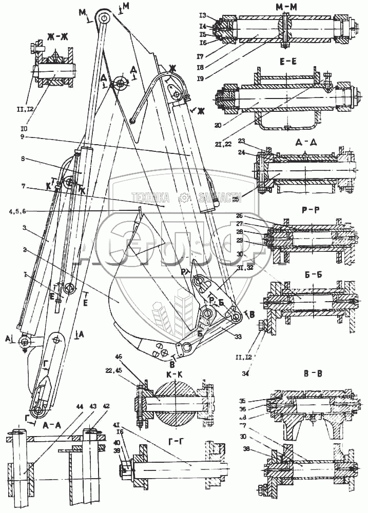 Каталог запасных частей к технике: Атек-2324-1. Оборудование обратной лопаты