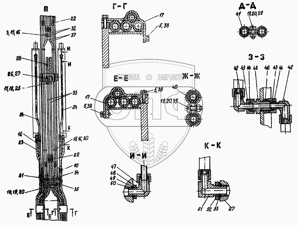 Каталог запасных частей к технике: Атек-999Е. Гидроразводка обратной лопаты
