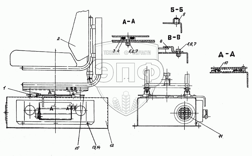 Каталог запасных частей к технике: Атек-999Е. Сиденье