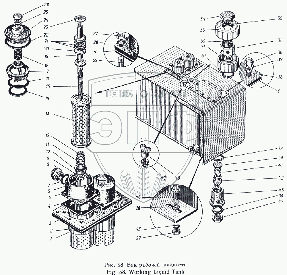 Каталог запасных частей к технике: Атек Э-5015А. Бак рабочей жидкости