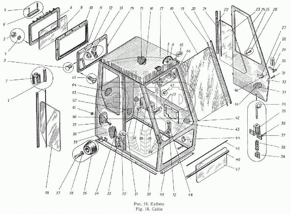 Каталог запасных частей к технике: Атек Э-5015А. Кабина