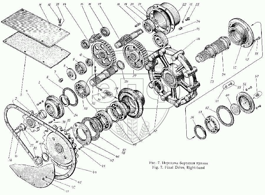 Каталог запасных частей к технике: Атек Э-5015А. Передача бортовая правая