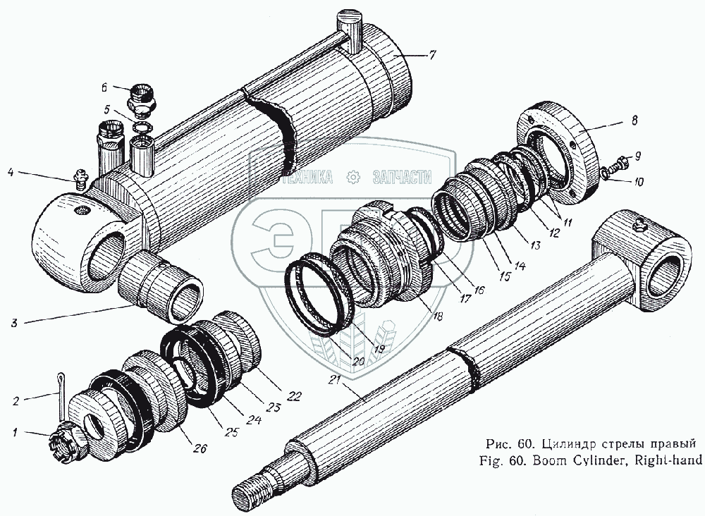 Каталог запасных частей к технике: Атек Э-5015А. Цилиндр стрелы правый