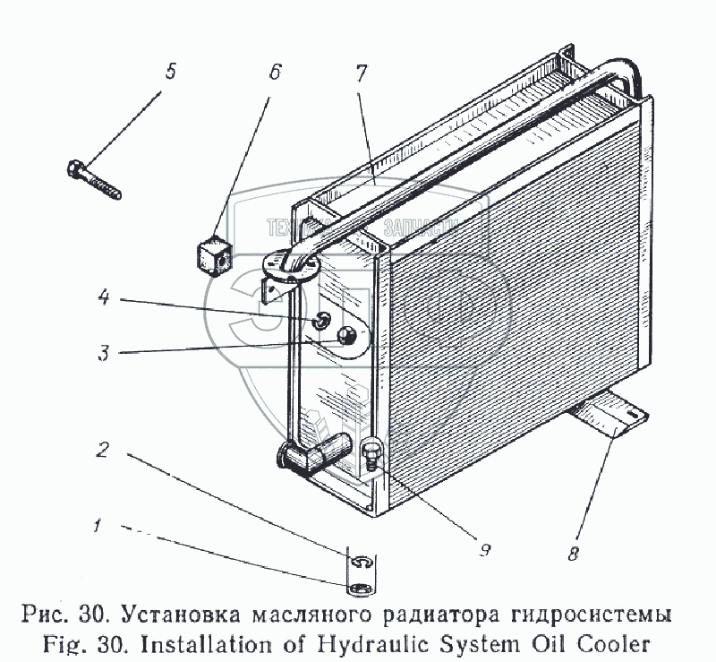Каталог запасных частей к технике: Атек Э-5015А. Установка масляного радиатора гидросистемы