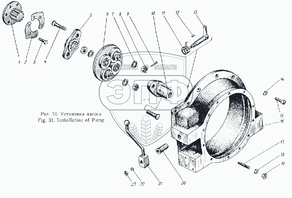 Каталог запасных частей к технике: Атек Э-5015А. Установка насоса