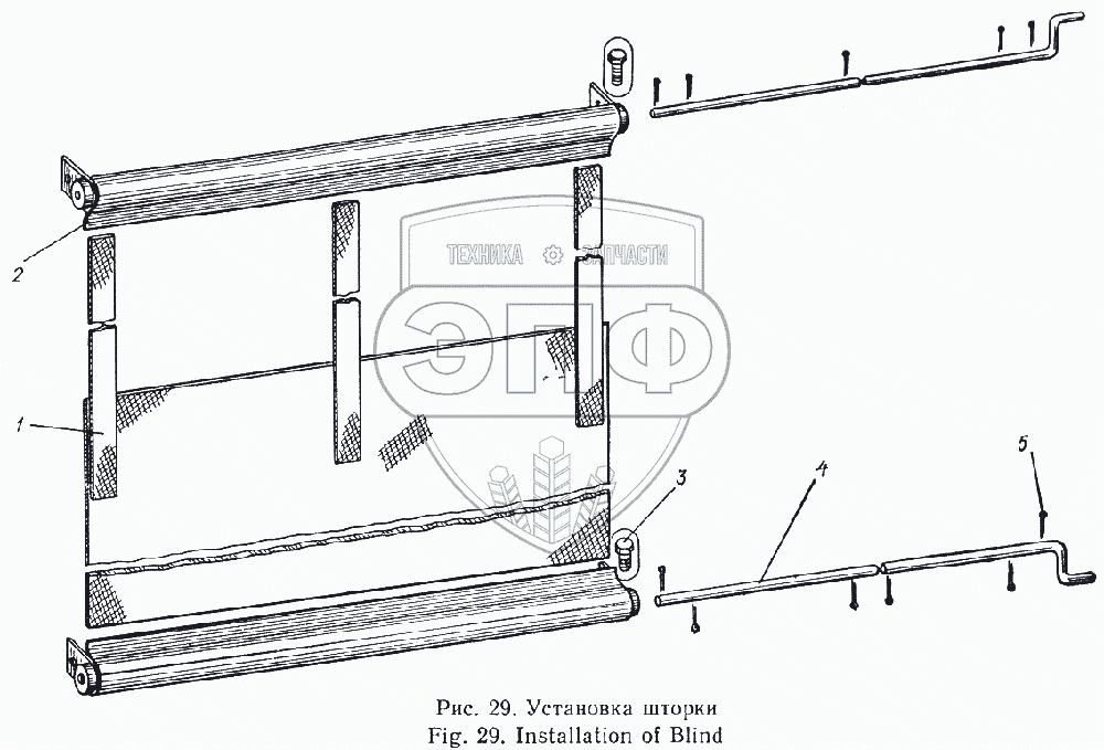 Каталог запасных частей к технике: Атек Э-5015А. Установка шторки