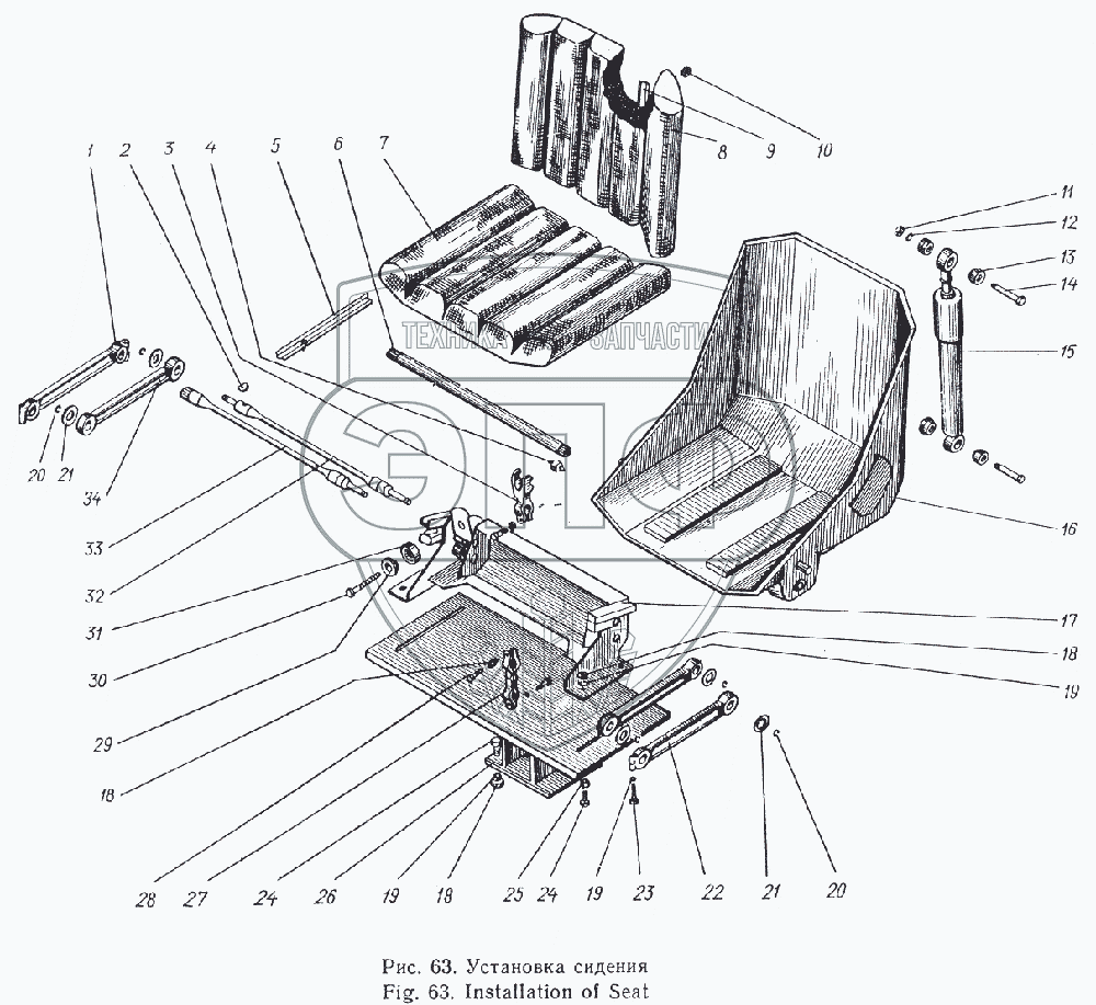 Каталог запасных частей к технике: Атек Э-5015А. Установка сидения