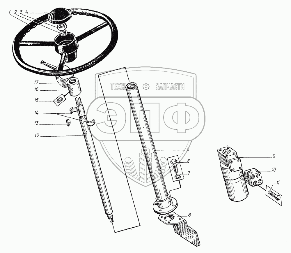 Каталог запасных частей к технике: Атек ЭО-4321Б. 10.3805.000 Колонка рулевая