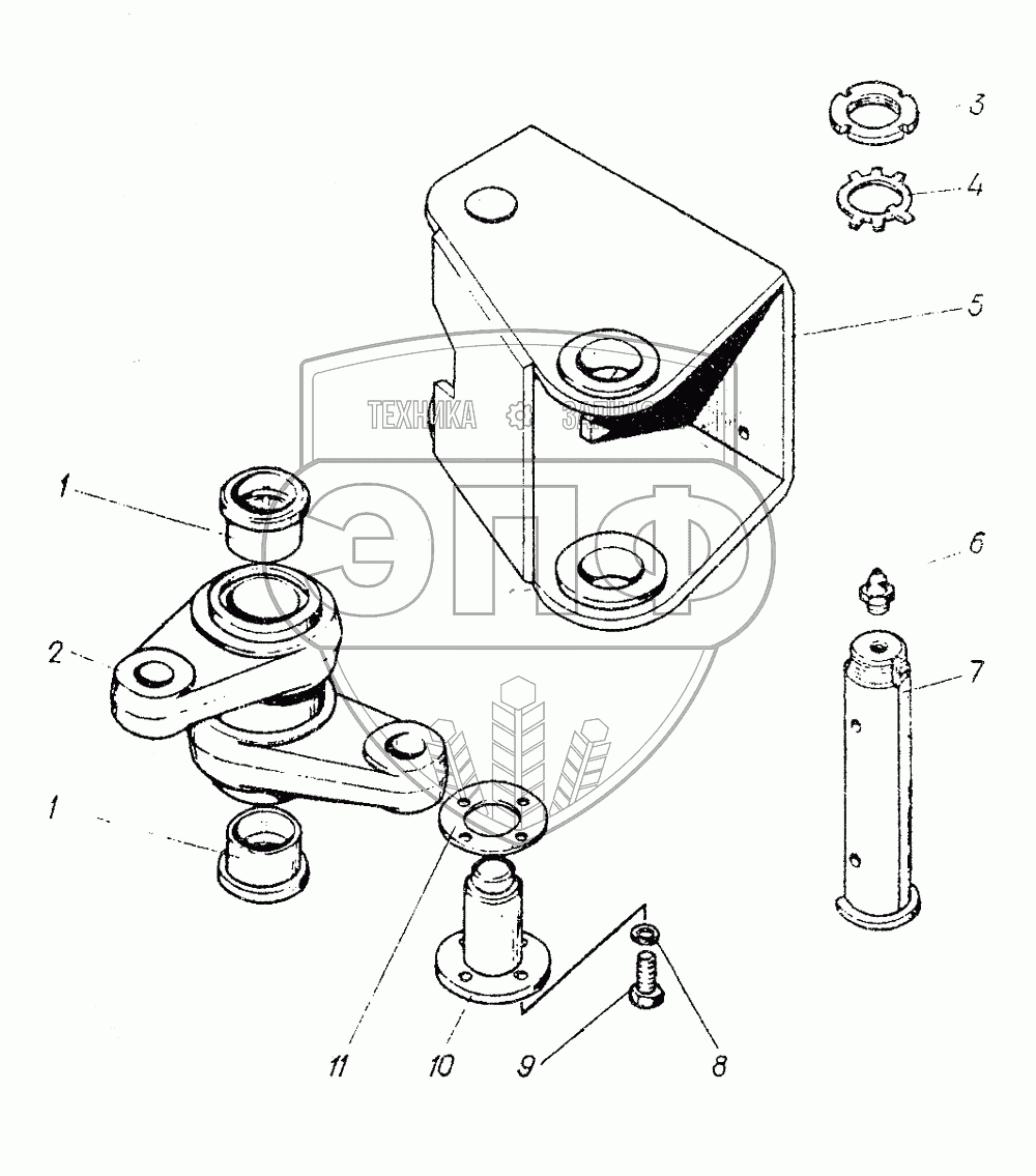 Каталог запасных частей к технике: Атек ЭО-4321Б. 110.0104.400 Кронштейн переднего моста