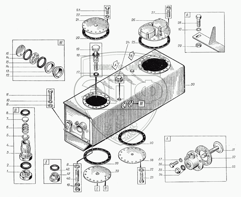 Каталог запасных частей к технике: Атек ЭО-4321Б. 49.1400.000 Гидробак