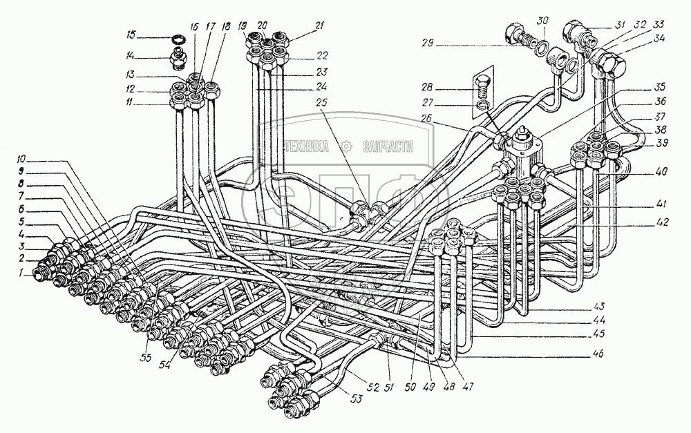 Каталог запасных частей к технике: Атек ЭО-4321Б. 49.3806.000 Гидроразводка