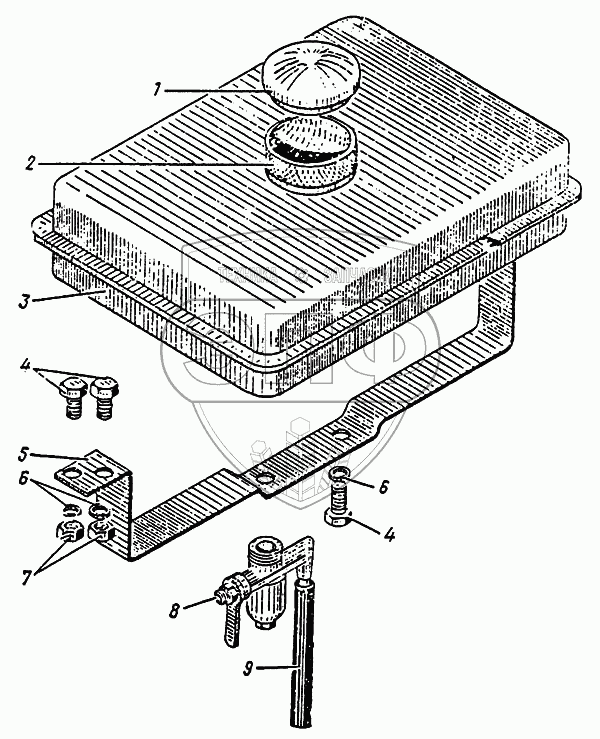 Каталог запасных частей к технике: Атек ЭОВ-4421. Установка бензобака 02.1205.000