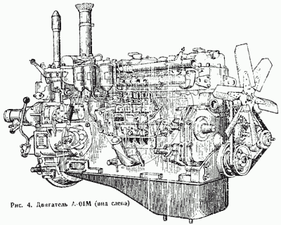 Каталог запасных частей к технике: АТЗ Т-4А. Двигатель А-01М (вид слева)