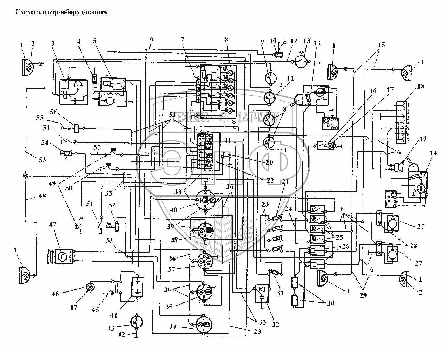 Каталог запасных частей к технике: АТЗ Т-4А, Т-4.02. Схема электрооборудования