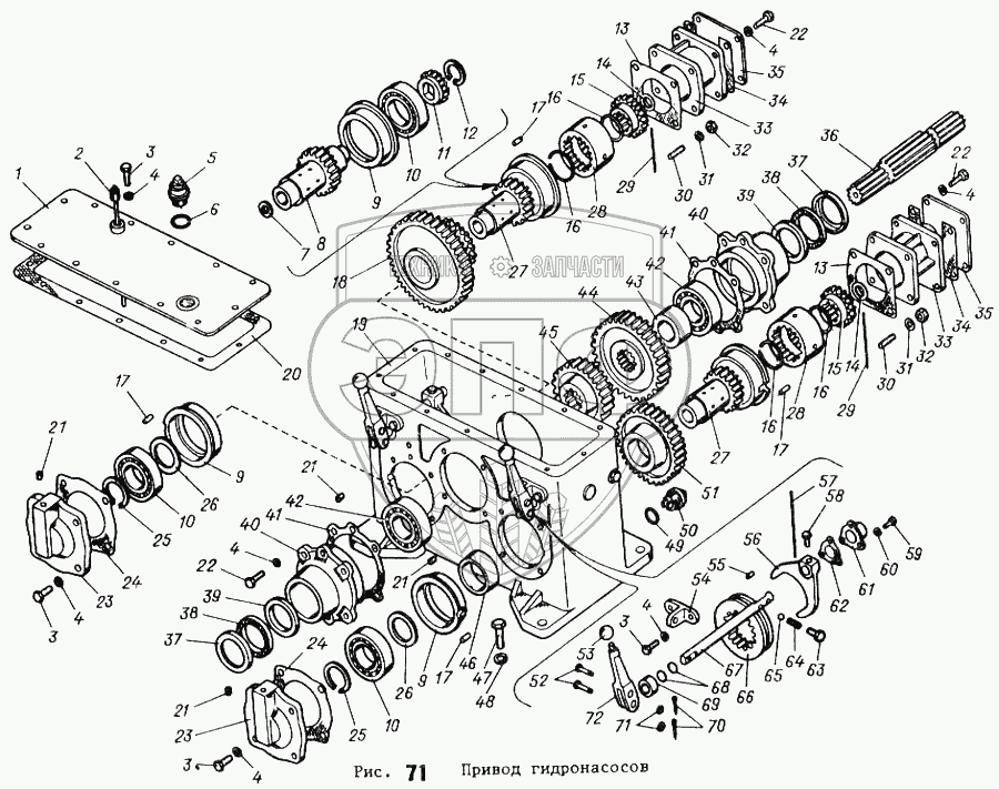 Каталог запасных частей к технике: АТЗ ТТ-4М. Привод гидронасосов