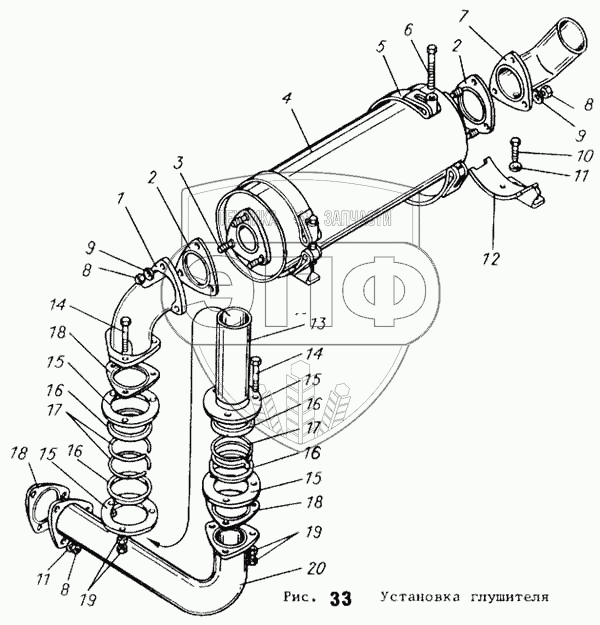 Каталог запасных частей к технике: АТЗ ТТ-4М. Установка глушителя