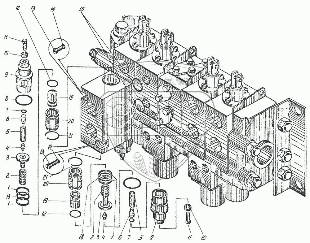 Каталог запасных частей к технике: Автокран КС-3571. Блок перепускных клапанов 64.600
