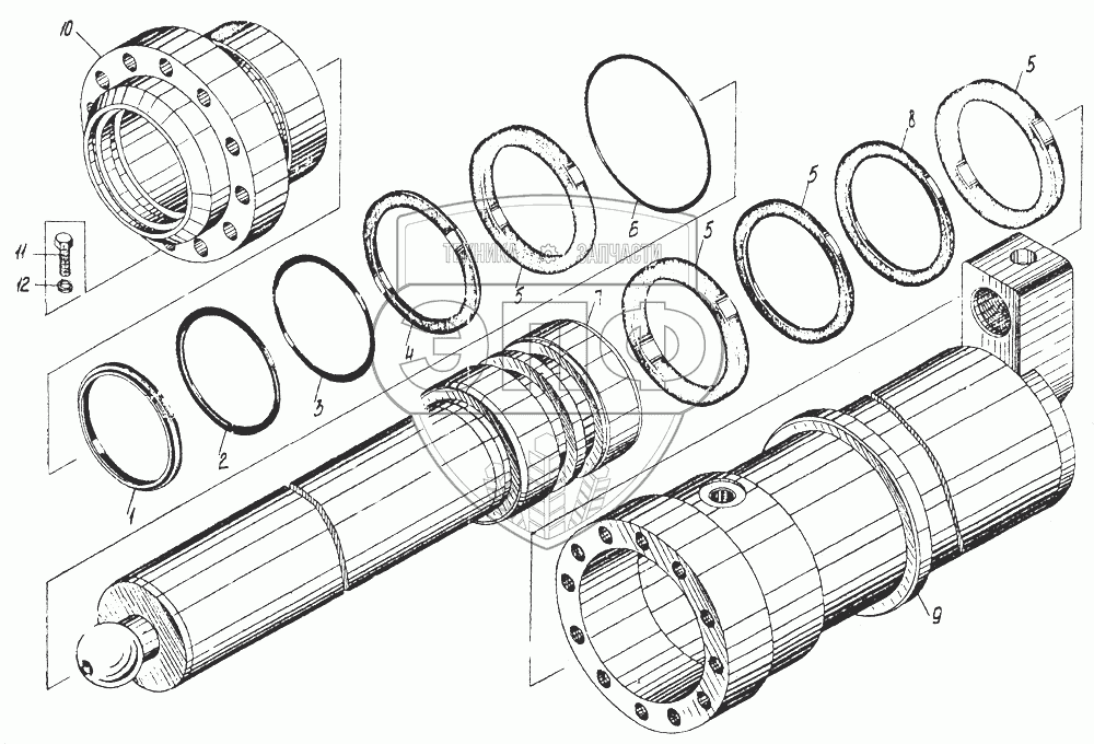 Каталог запасных частей к технике: Автокран КС-3571. Гидроцилиндр Ц22.000-01