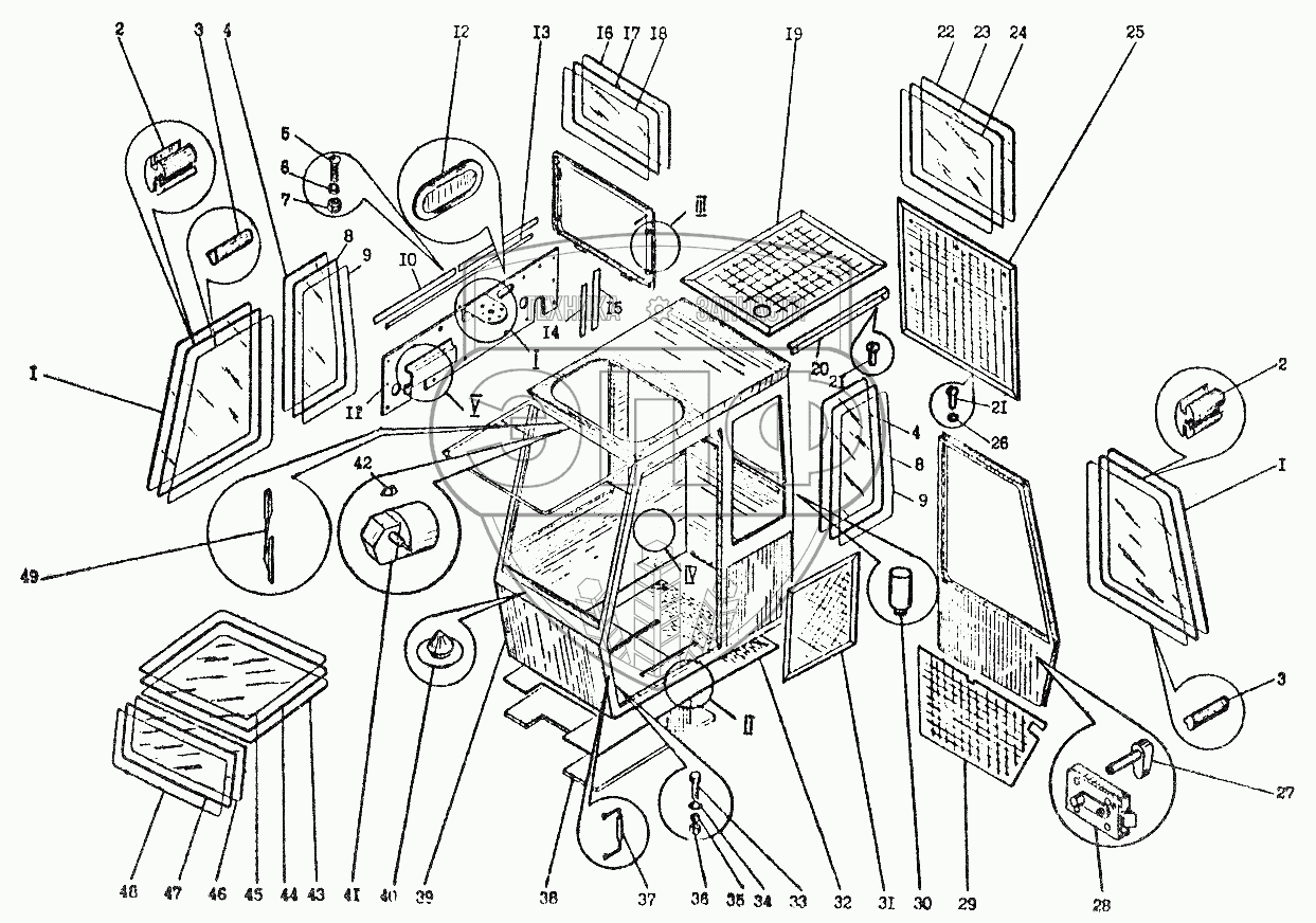 Каталог запасных частей к технике: Автокран КС-3574. Установка кабины КС-3574.52.000