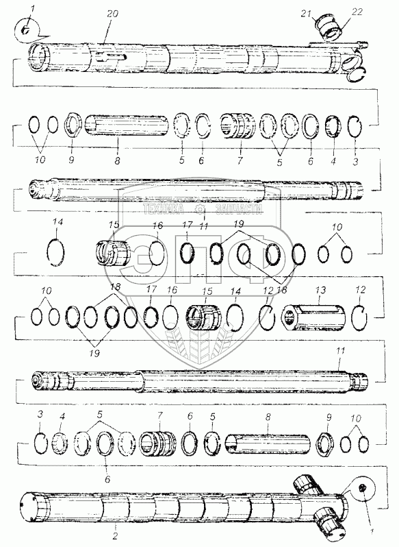Каталог запасных частей к технике: Автокран КС-3577. Гидроцилиндр У.31.03.000