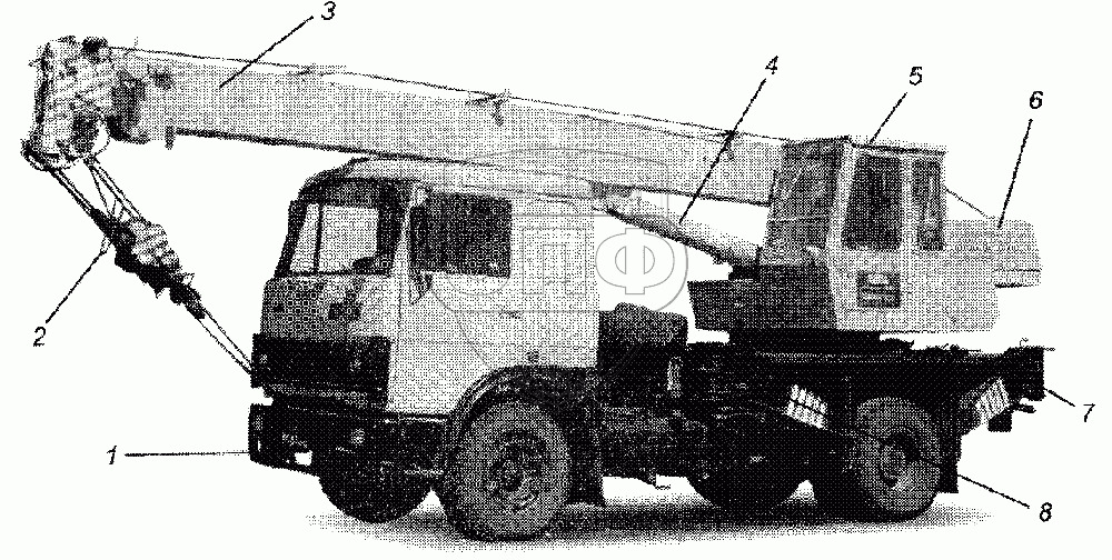 Каталог запасных частей к технике: Автокран КС-3577. Общий вид крана КС-3577