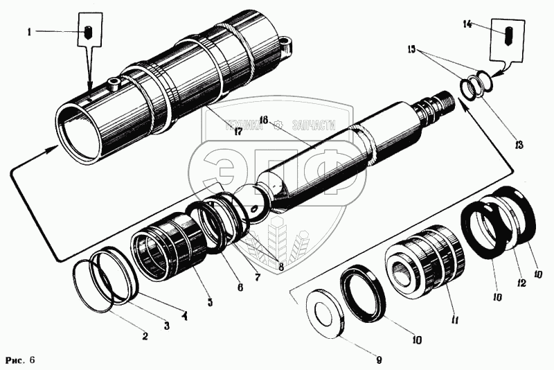 Каталог запасных частей к технике: Автокран КС-4562. Гидроцилиндр