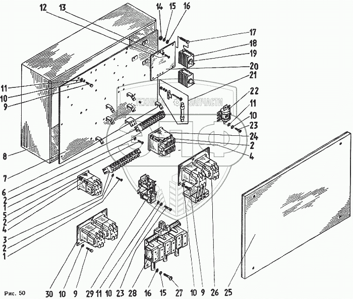 Каталог запасных частей к технике: Автокран КС-4562. Ящик управления