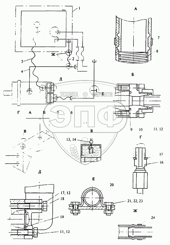 Каталог запасных частей к технике: Автокран КС-45717К-1. Гидрооборудование неповоротной части