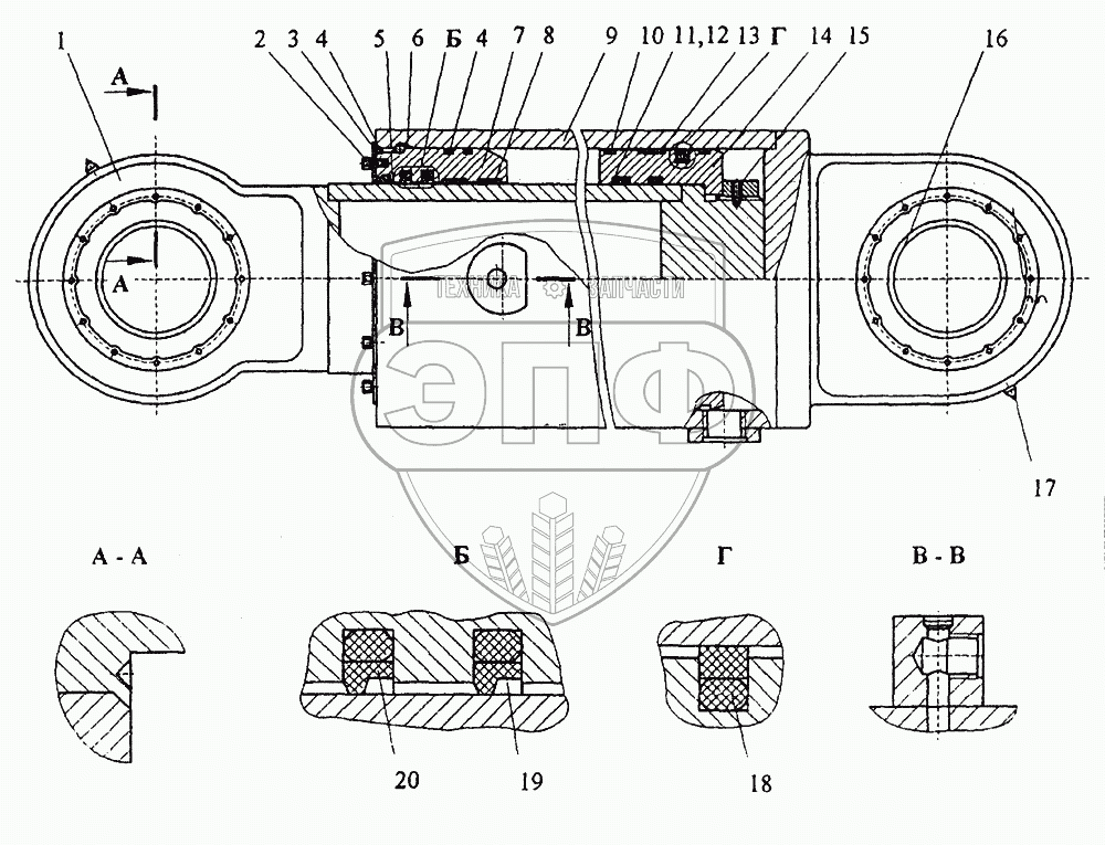 Каталог запасных частей к технике: Автокран КС-45717К-1. Гидроцилиндр
