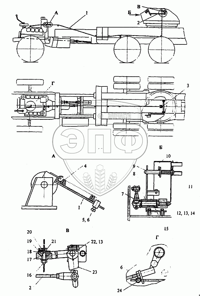 Каталог запасных частей к технике: Автокран КС-45717К-1. Привод управления двигателем