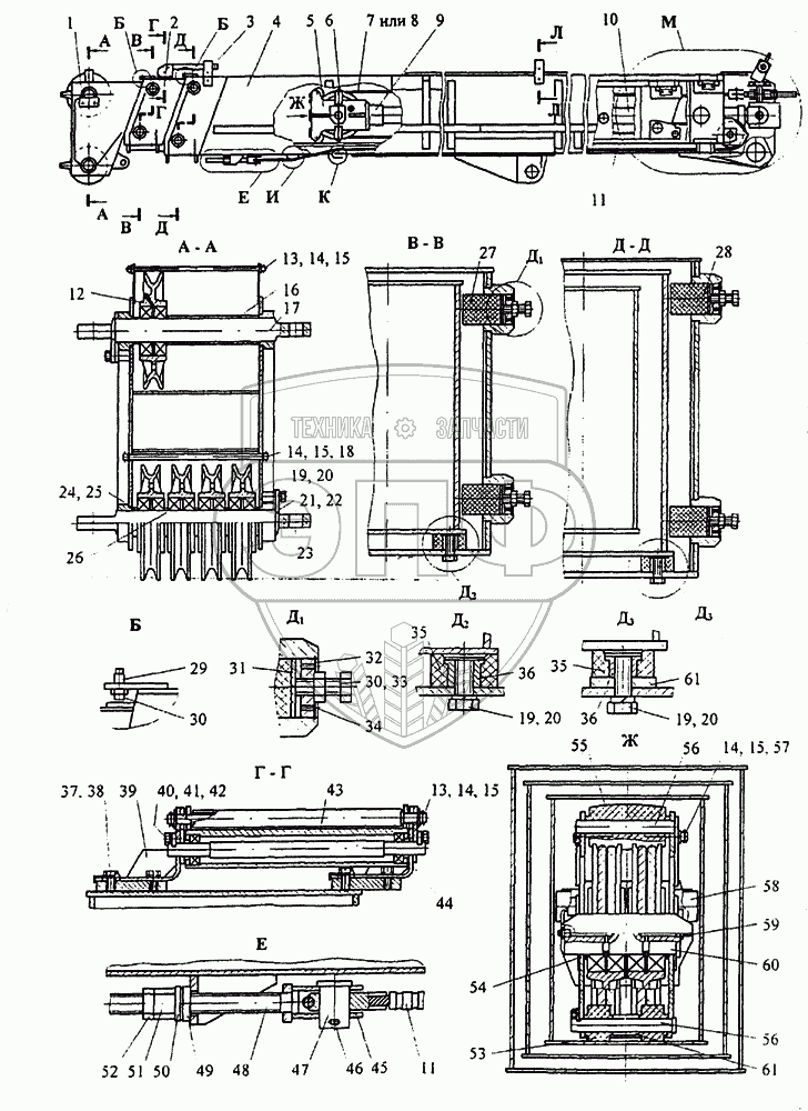 Каталог запасных частей к технике: Автокран КС-45717К-1. Стрела телескопическая