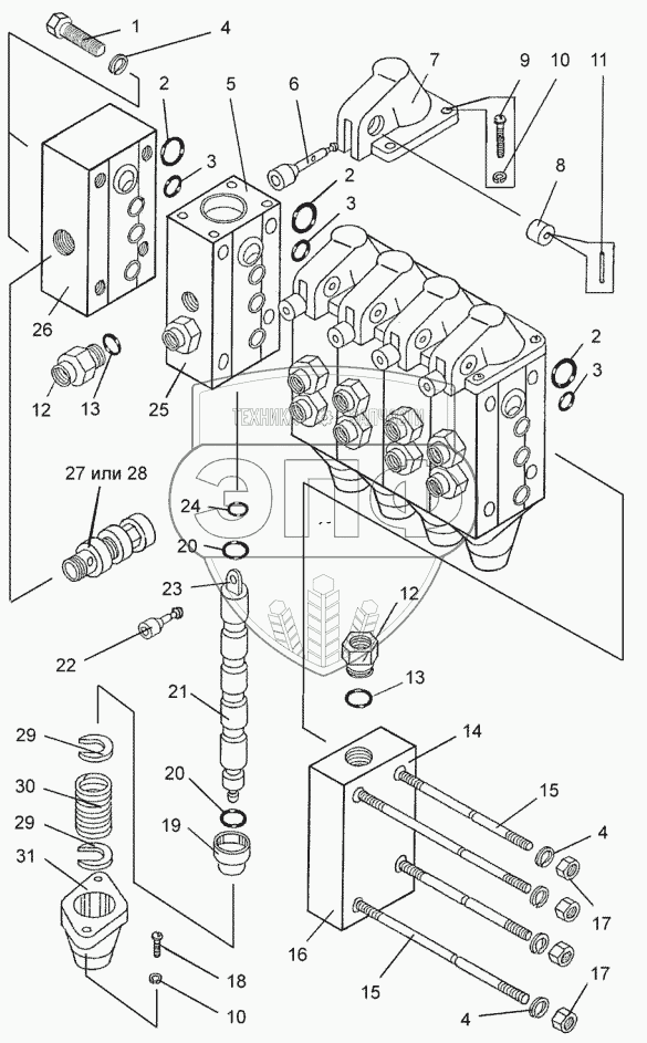 Каталог запасных частей к технике: Автокран КС-45717К-1 (вариант). Гидрораспределитель