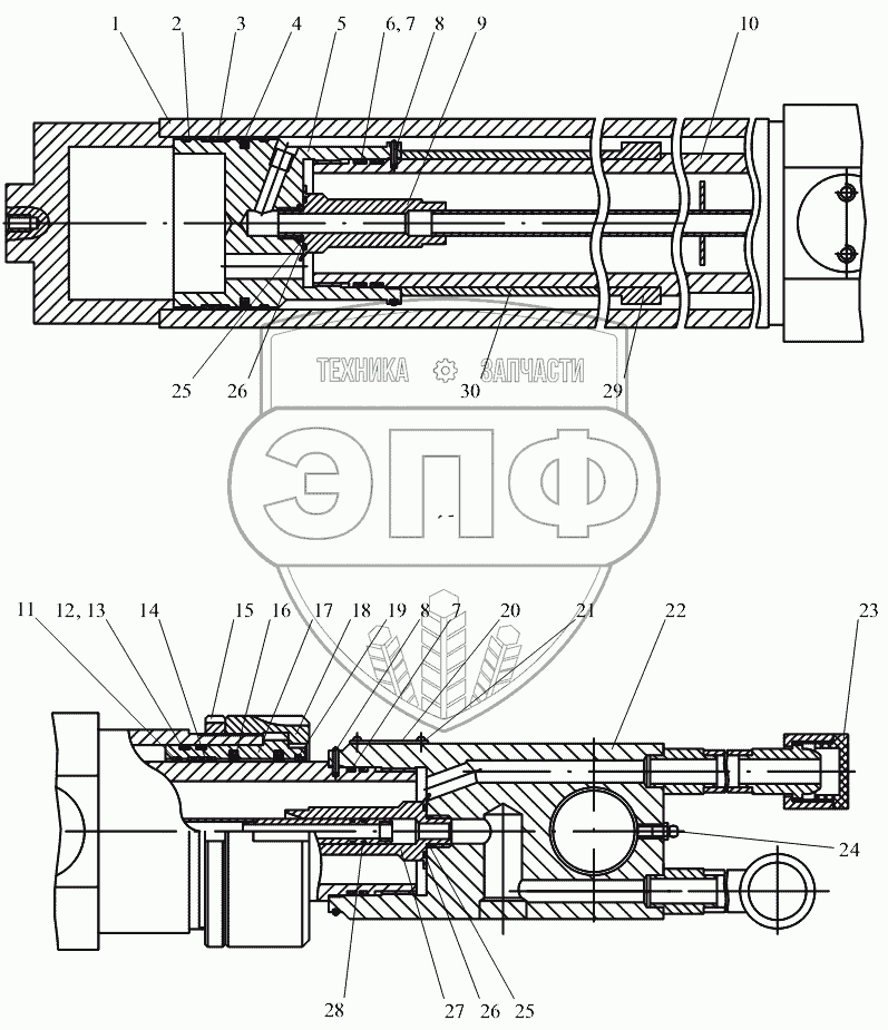 Каталог запасных частей к технике: Автокран КС-45717К-1 (вариант). Гидроцилиндр телескопирования