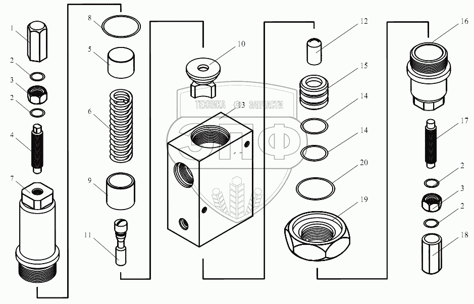 Каталог запасных частей к технике: Автокран КС-45717К-1 (вариант). Клапан обратный управляемый