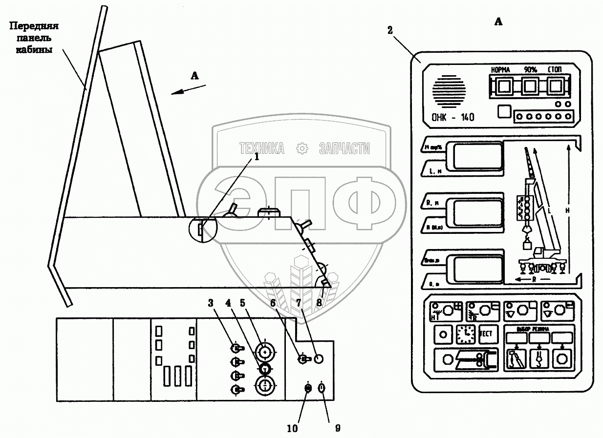 Каталог запасных частей к технике: Автокран КС-6973А. Панель управления КС-6973А.55.000