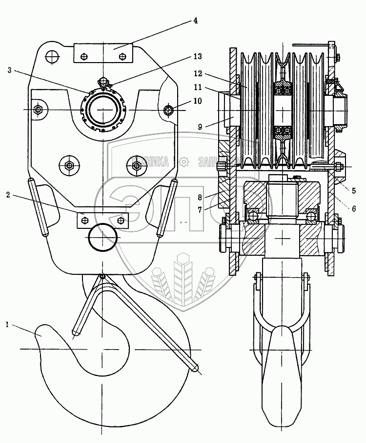Каталог запасных частей к технике: Автокран КС-6973А. Подвеска крюковая КС-6973А.63.300