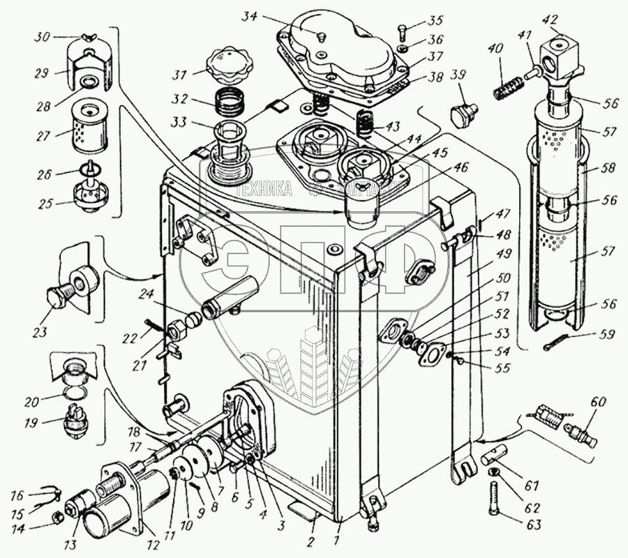 Каталог запасных частей к технике: АЗСМ МСН-10. Бак гидросистемы (1)