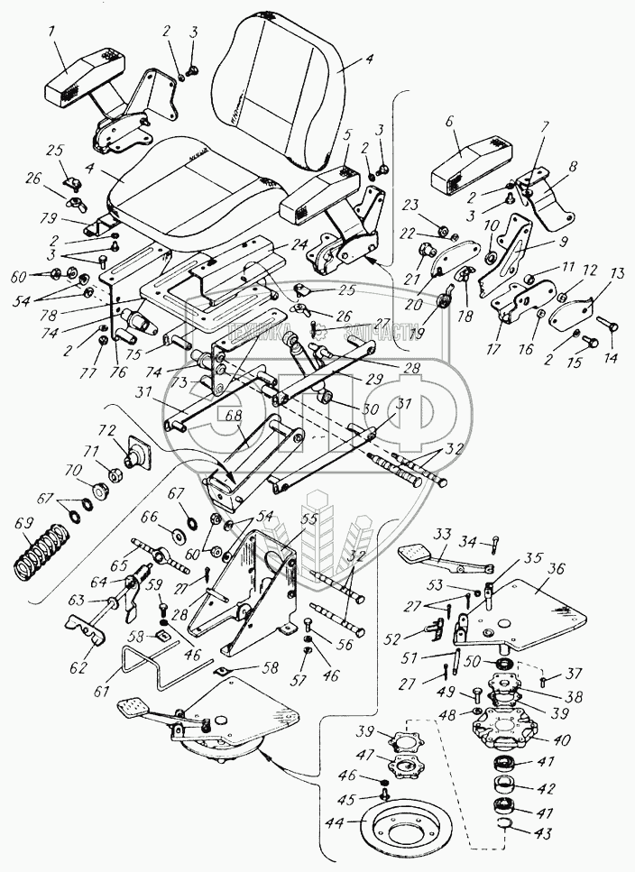 Каталог запасных частей к технике: АЗСМ МСН-10. Установка сиденья