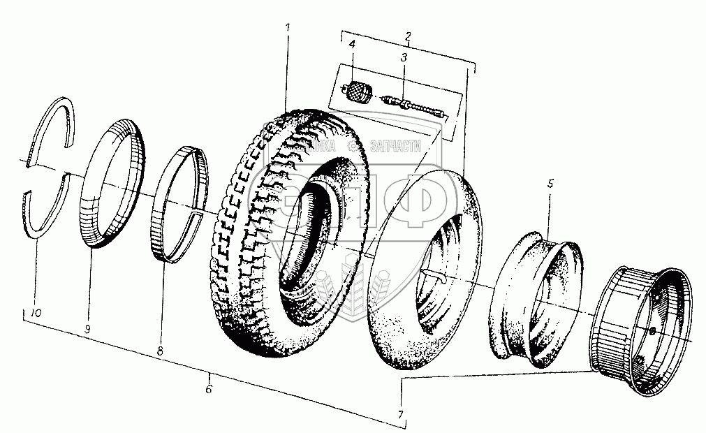 Каталог запасных частей к технике: Балканкар Рекорд ДВ-1621. Колесо