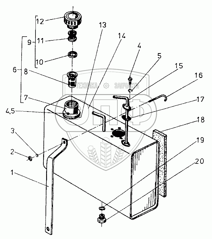 Каталог запасных частей к технике: Балканкар Рекорд ДВ-1621. Топливный бак