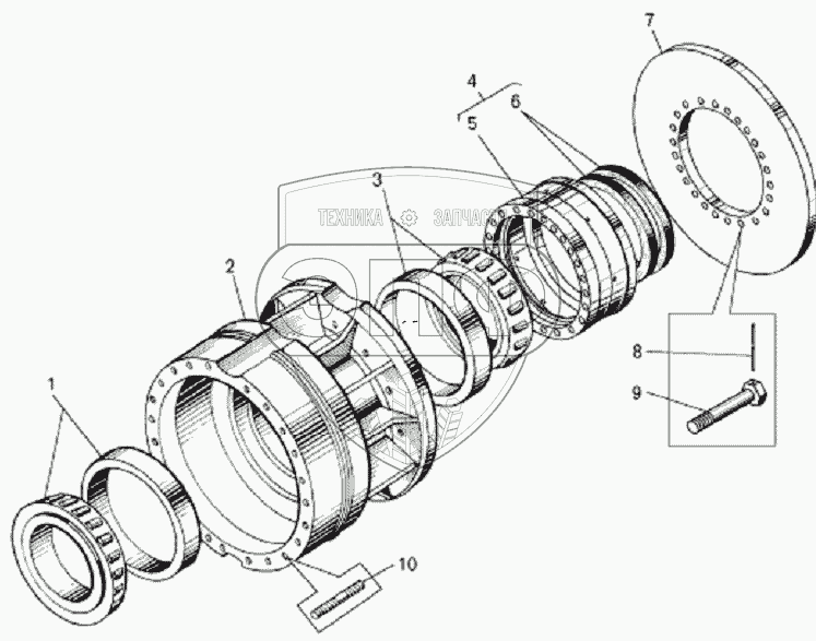Каталог запасных частей к технике: БелАЗ-7822. Cтупица колеса
