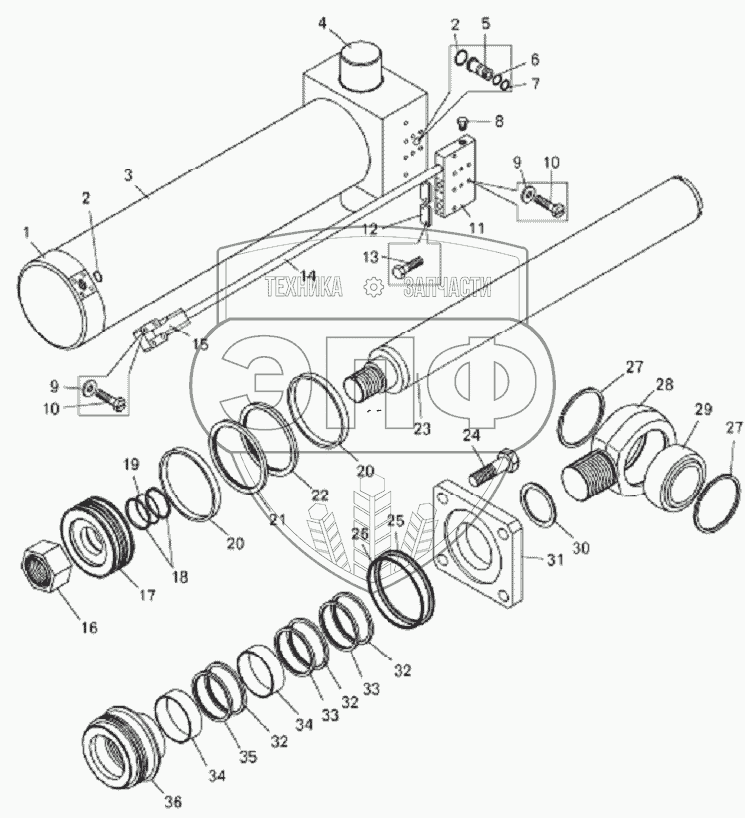 Каталог запасных частей к технике: БелАЗ-7822. Цилиндр подъема стрелы