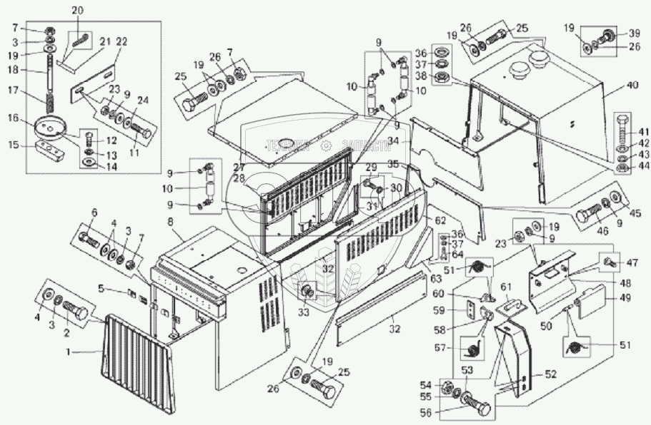 Каталог запасных частей к технике: БелАЗ-7822. Установка капотов