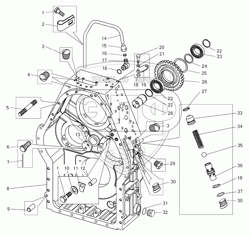 Каталог запасных частей к технике: БелАЗ-7822. Картер гидромеханической передачи