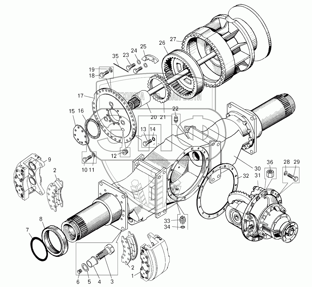 Каталог запасных частей к технике: БелАЗ-7822. Мост ведущий задний