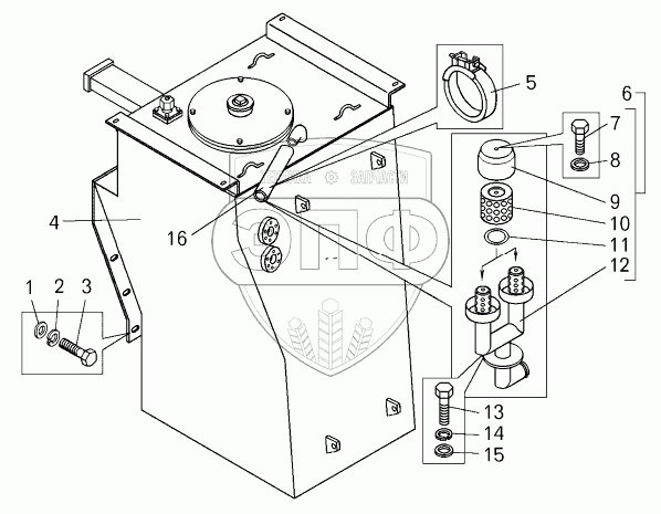 Каталог запасных частей к технике: БелАЗ-7822. Установка масляного бака